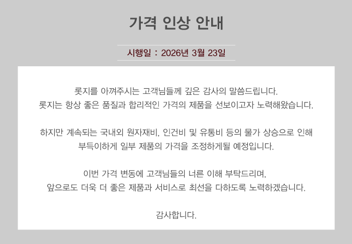 소식 구독하기 카카오채널 친구하고, 2,000원 쿠폰과 함께 롯지의 소식을 가장 빠르게 접하세요. 쿠폰 받기 | |